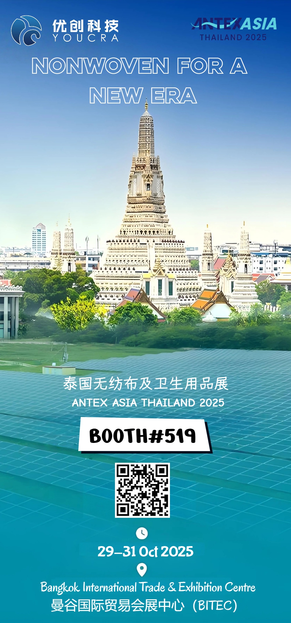 Мы с большим удовольствием объявляем, что компания Changzhou Youchuang официально примет участие в Тайландском международном выставке нетканых материалов и гигиенических изделий, которая пройдёт с 20 по 31 октября 2025 года в Манильском центре международной торговли в Бангкоке!